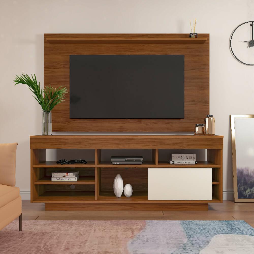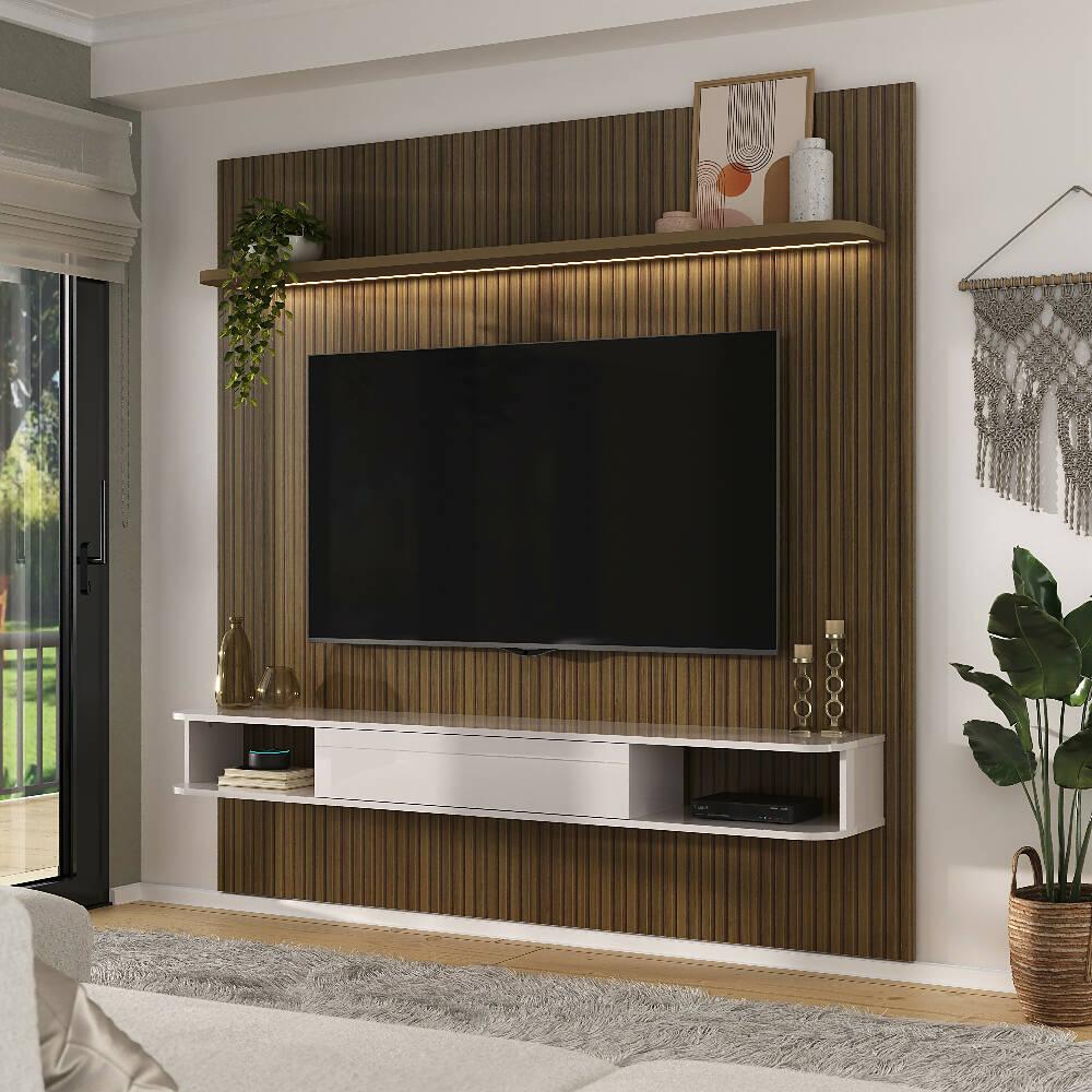 Panel mueble de tv 70" luxury bertolini incluye soporte blanco con pino